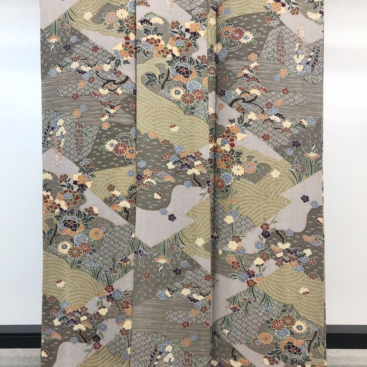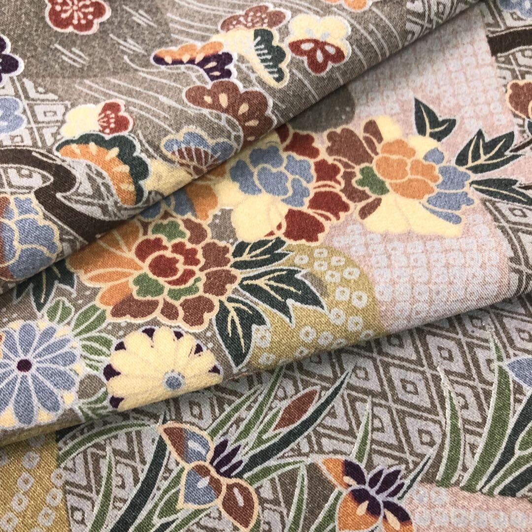 落ち着いた色彩、四季の花模様、鹿の子模様などの柄裄がデザインされた素敵なお品でございます。
