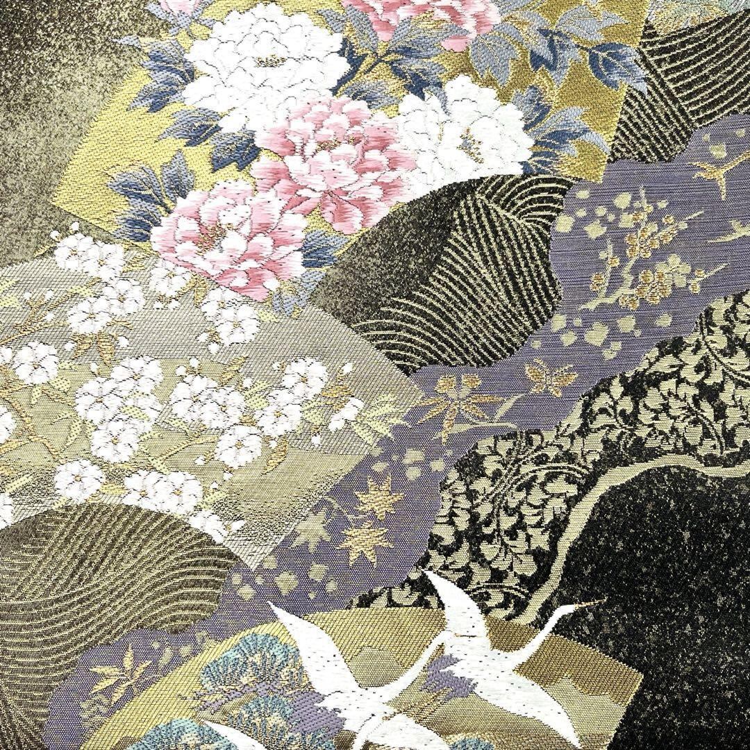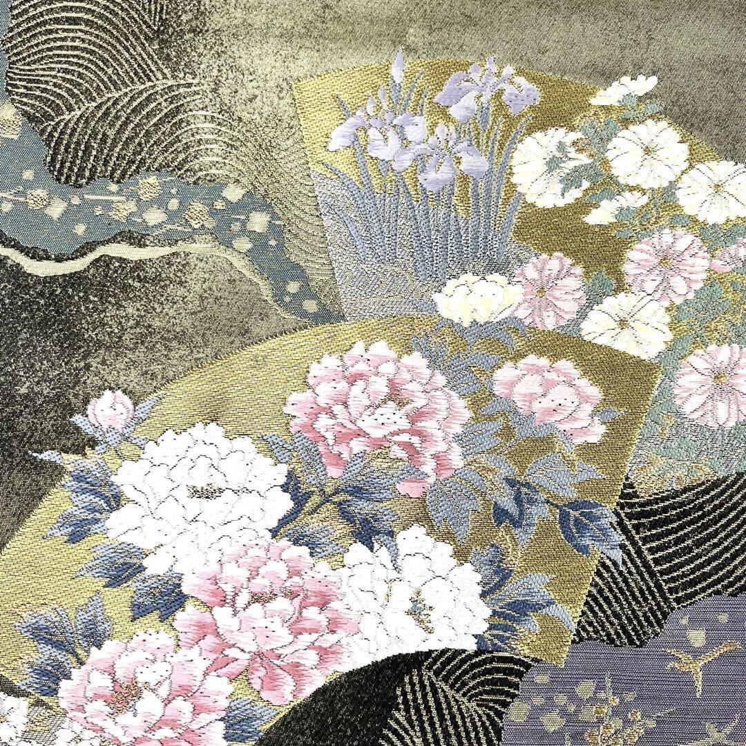 地紙に美しい花柄模様、飛翔鶴などがデザインされた煌びやかで素敵な柄裄のお品でございます。