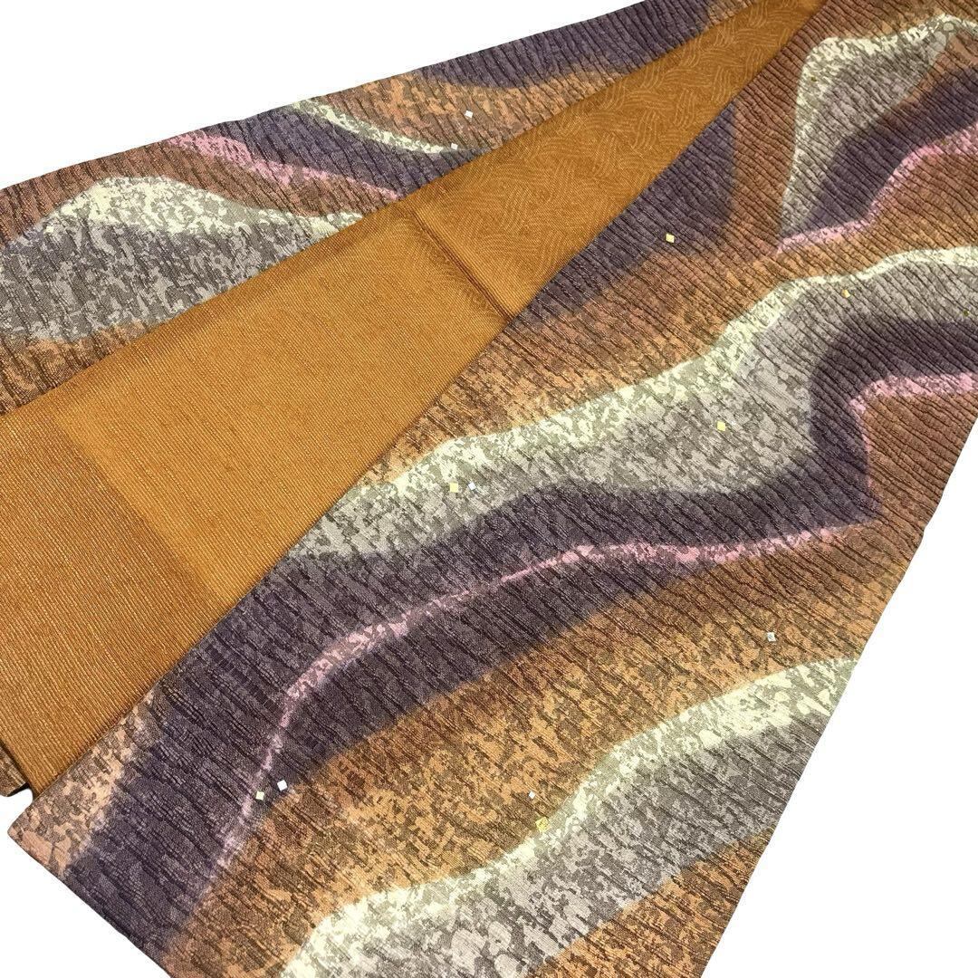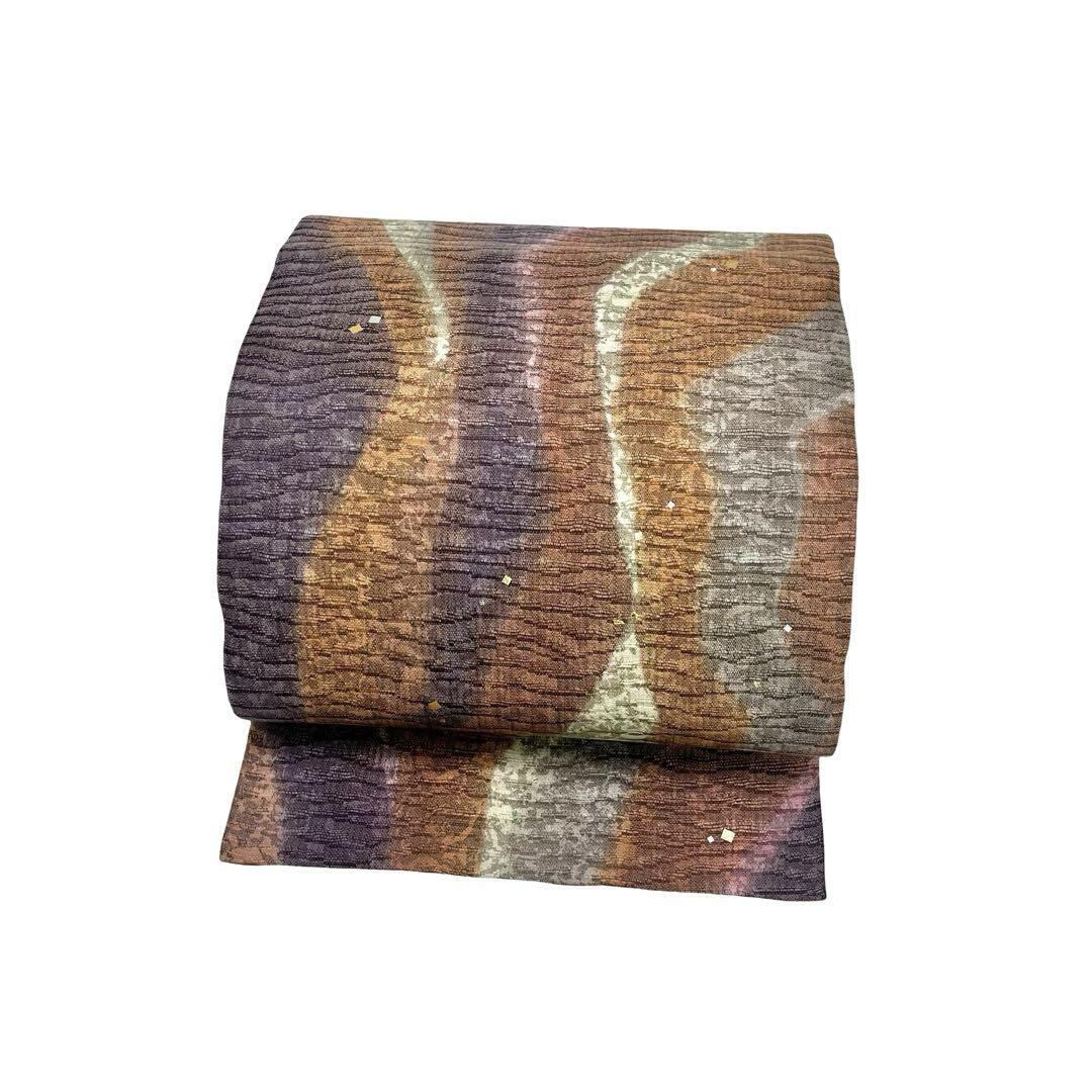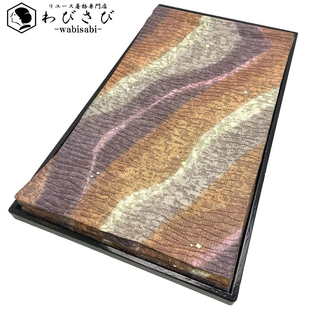 袋帯 金彩の魔術師 堀省平 染柄に箔散らし 辛螺色 紬 O-4707 着物 きもの kimono 和服 和装 中古 リサイクル着物 【送料無料】