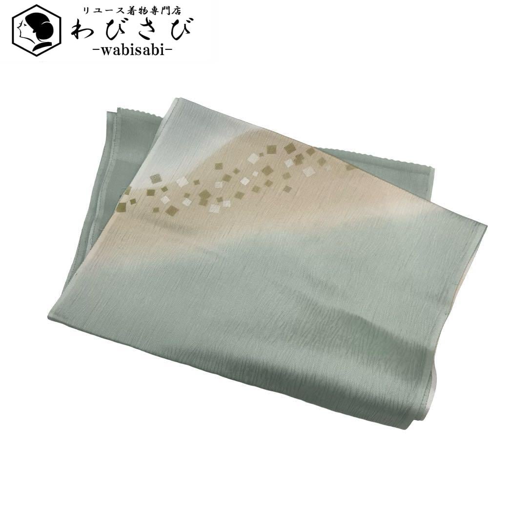 和装小物 帯揚げ 正絹 綸子 暈し 四角散らし模様 裏葉柳色 金彩 C-5557 着物 きもの kimono 和服 和装 中古 リサイクル着物 【送料無料】