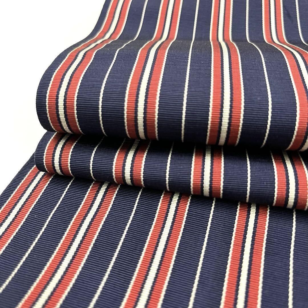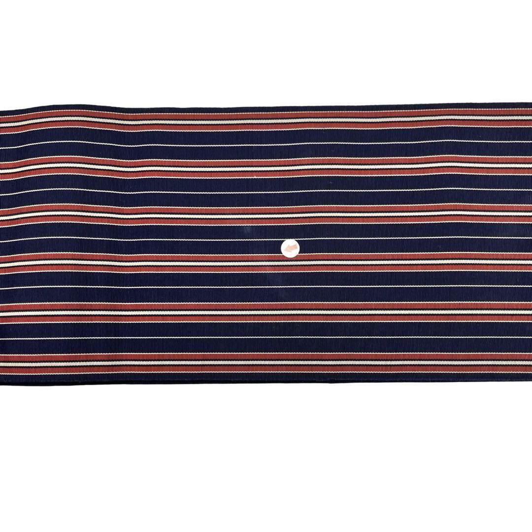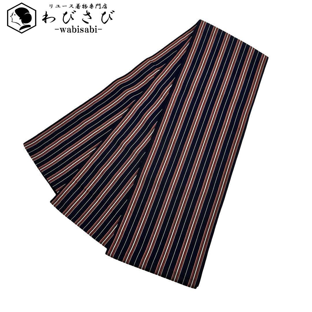 紺鉄色ベースのお色味に縦縞模様がデザインされた素敵な柄裄のお品でございます。