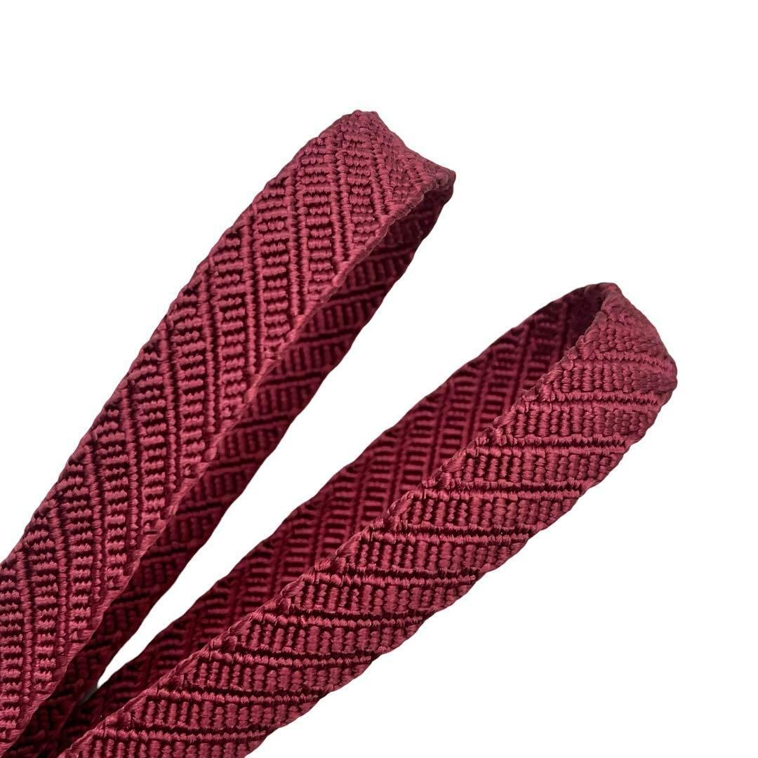 蘇芳色のお色味に織模様が素敵な平組紐の素敵なお品でございます。