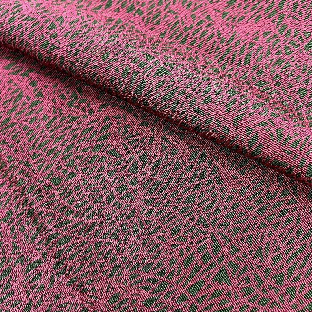 深緑色のお色味に抽象模様がデザインされた品のある素敵な柄裄のお品でございます。