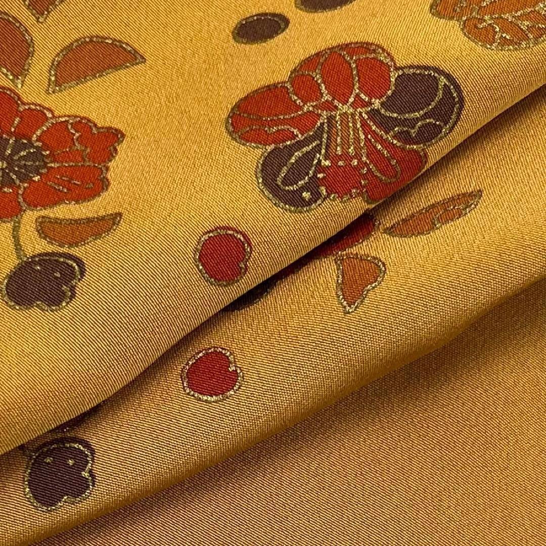 金茶色のお色味に辻が花模様がデザインされた素敵な柄裄のお品でございます。