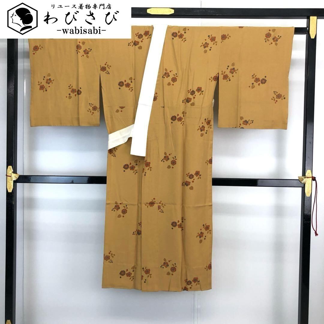 長襦袢 単衣 辻が花模様 金彩 金茶色 J-259 着物 きもの kimono 和服 和装 中古 リサイクル着物 【送料無料】